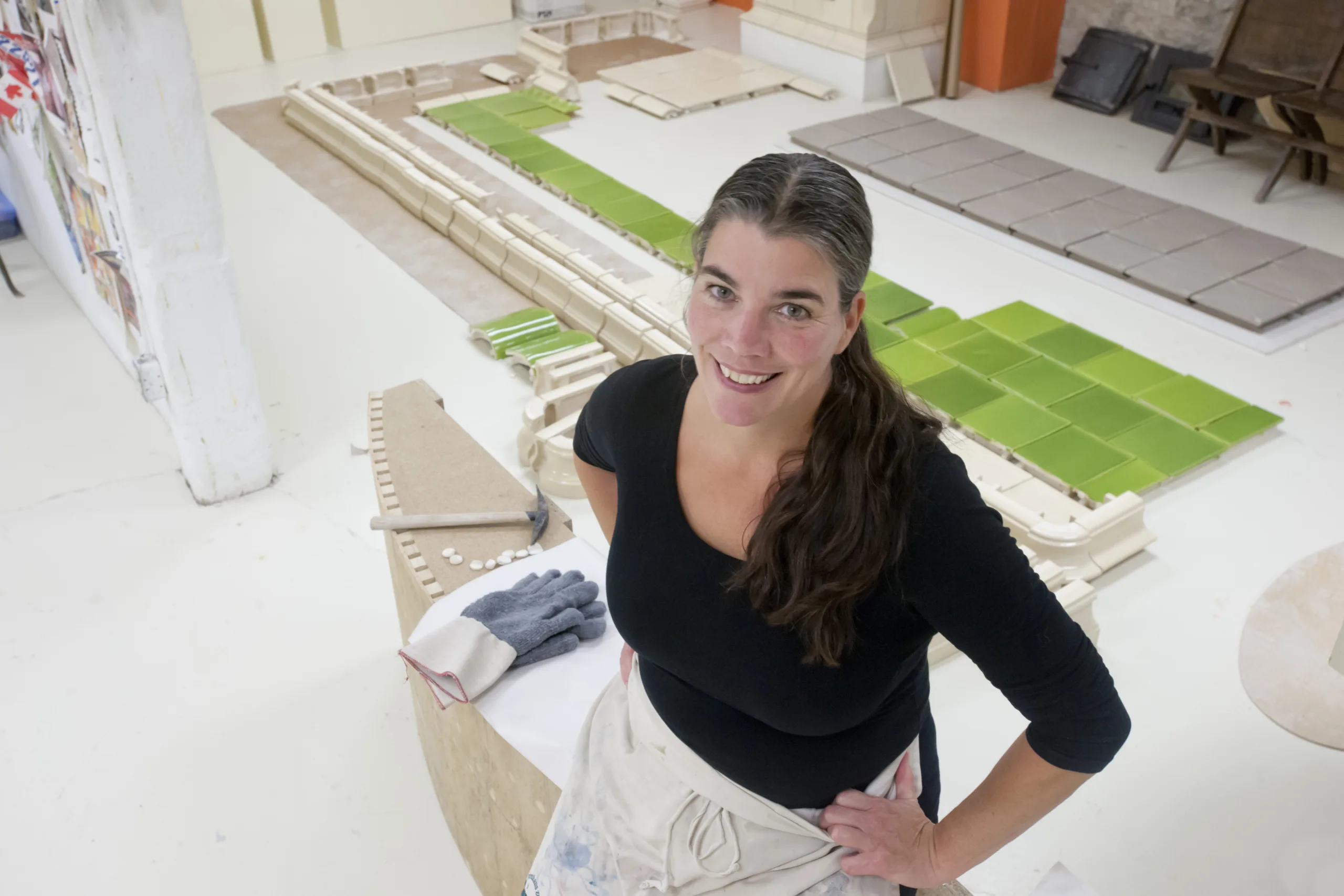 Jessica Steinhäuser is an award-winning Canadian ceramic artist who works on a grand scale, breathing new life into the ancient tradition of building Kachelöfen. Kachelöfen are massive clay stoves that burn wood efficiently and cleanly. For Jessica, they are akin to giant blank canvases that she turns into stunning contemporary art installations that warm both body and soul.