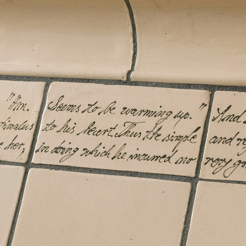 Slip trailing is a traditional decorative technique from Frankonia, a region of Bavaria in Germany. It is primarily used to create pleasing radial geometric patterns, often using cobalt blue glaze. We’ve also used the slip trailer to write meaningful poetry or prose on Kacheln. Slip trailing creates a beautiful tactile quality on the surface of the clay body that is unique!