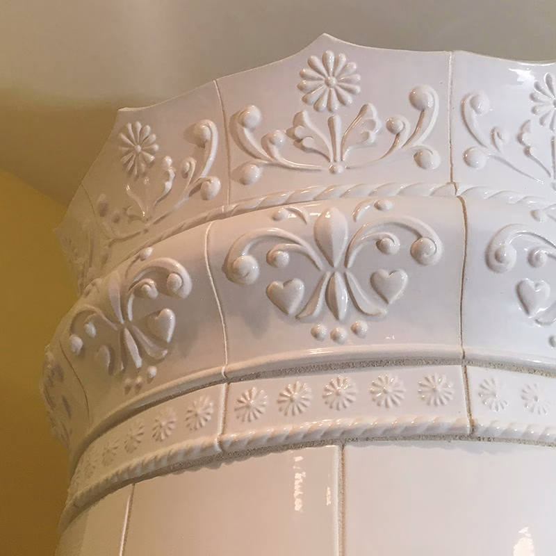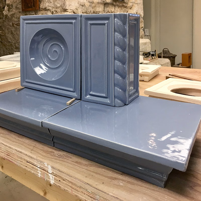 Our Kachelöfen are endlessly customizable! We’ve listed a few of the more popular options below. We are constantly experimenting with and refining our techniques, and feel qualified to meet any challenge that you may present to us. Whether it’s incorporating a family crest, a personal motto, a meaningful symbol, or simply finding the perfect glaze in your favourite colour, we can work with you to achieve your goals.
